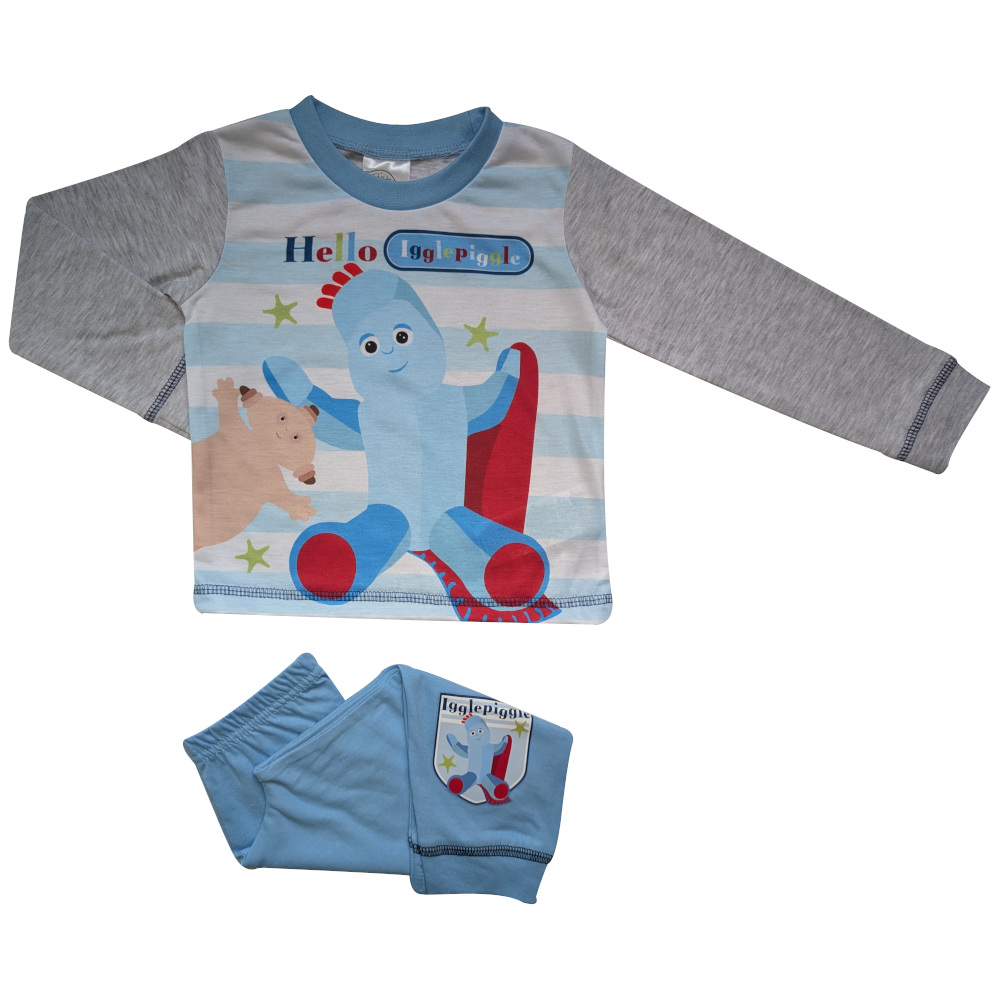 - Bottom: The long bottoms in blue feature a further image to the bottom of one leg, of Iggle Piggle with his red blanket.