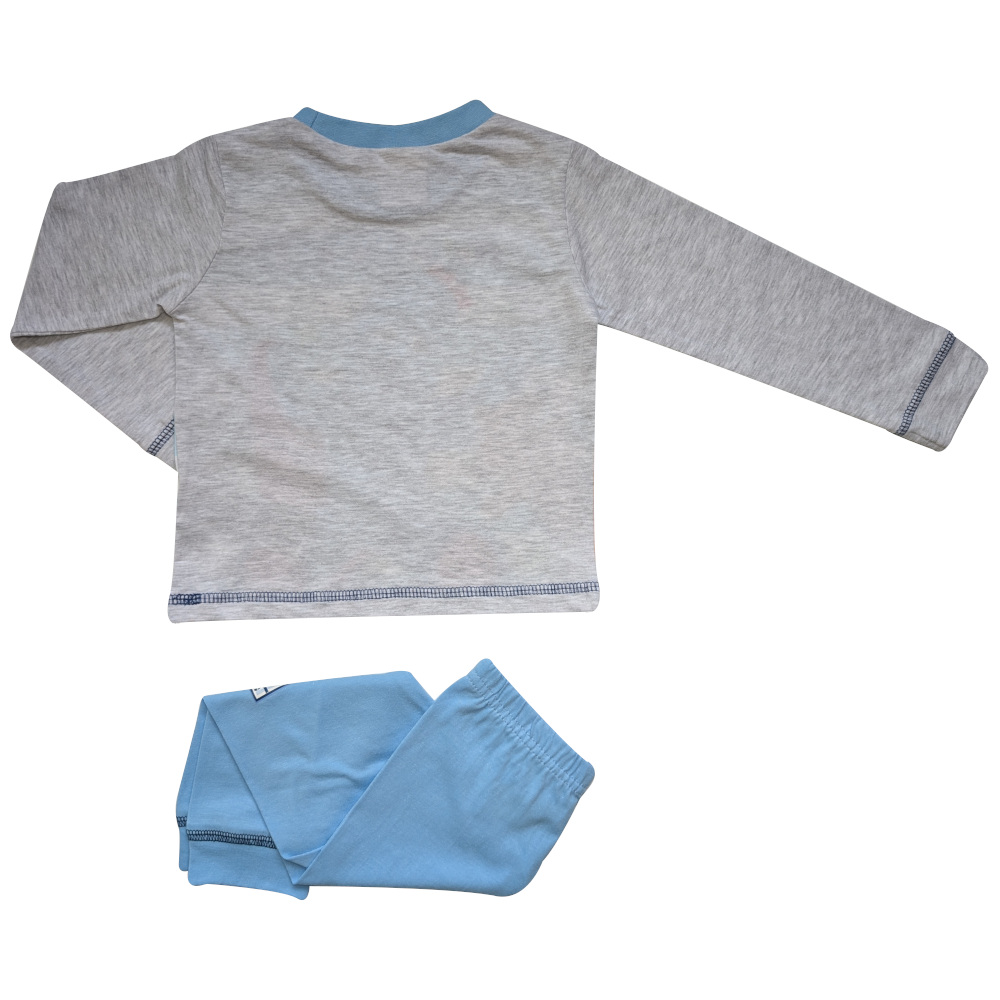 Image 4: Is of the top of the pyjama set in blue and grey with a playful main image.