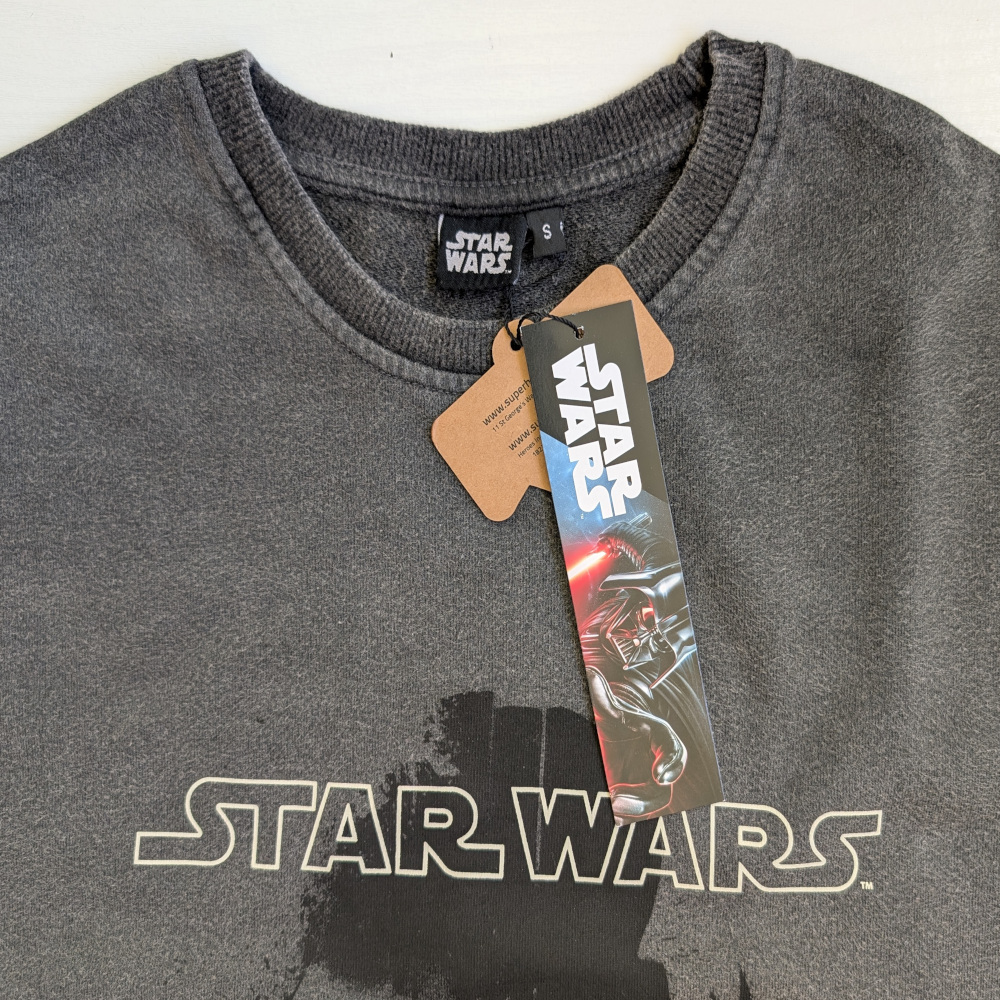 Image 1: The front of the acid wash grey sweatshirt with a Darth Vader image to the front.