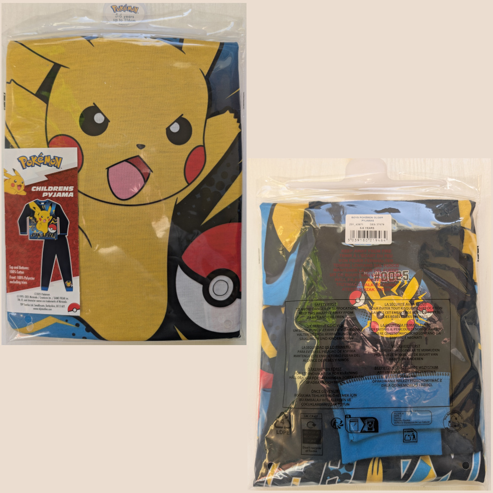 - Top: The long-sleeved top - with vivid Pikachu #0025 artwork surrounded by a pokeball and lightening, with “PIKACHU” text. Available in a blue and black colourway, the top combines soft fabrics for a comfortable fit all night long.