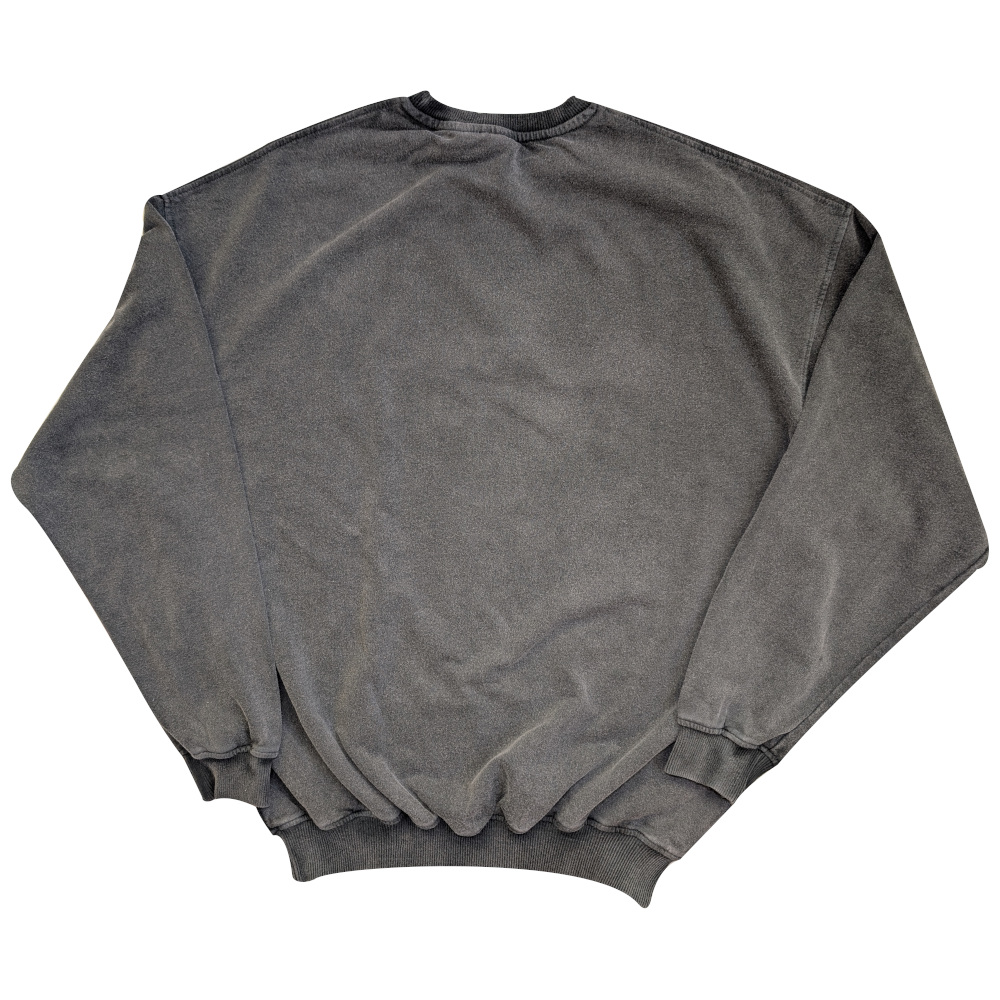 Image 1: The front of the acid wash grey sweatshirt with a Demogorgan image to the front.