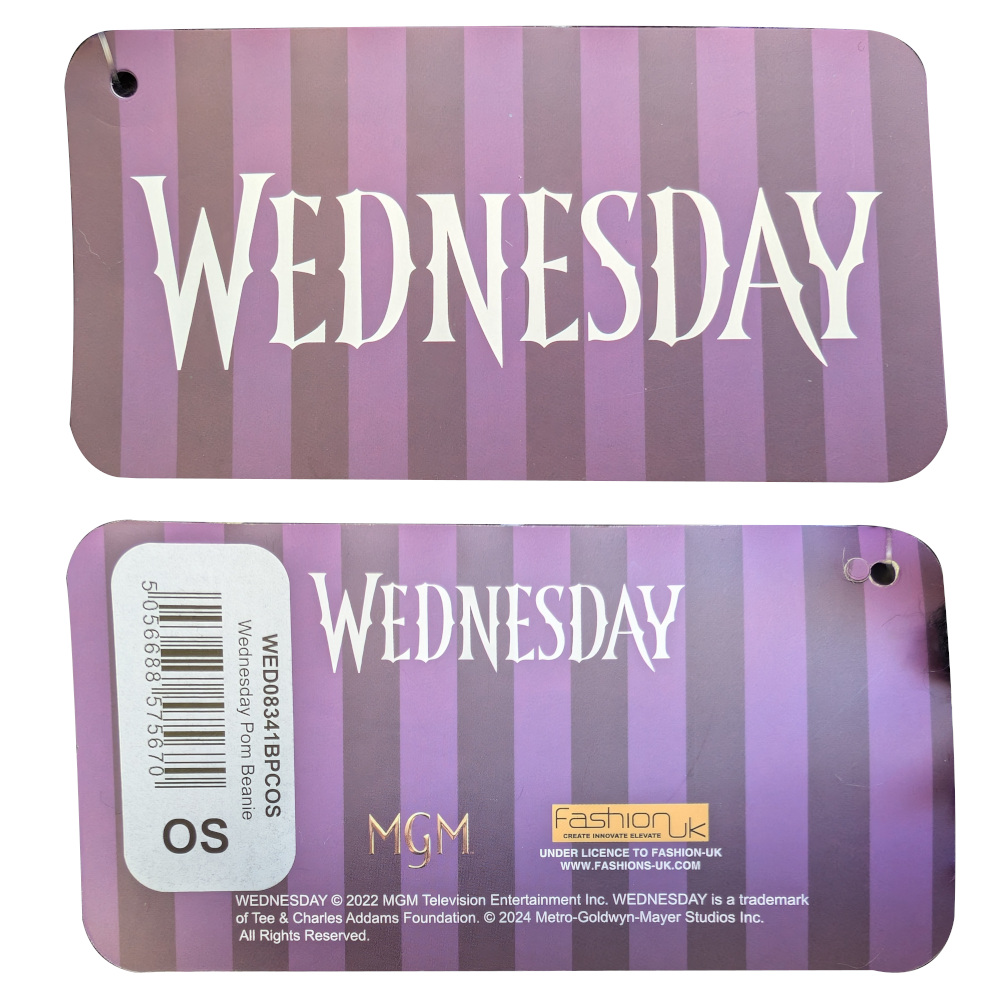 Add a little eerie elegance to your winter wardrobe with this Wednesday bobble beanie, inspired by the iconic Addams Family character. With its gothic motifs and playful pom-pom, this hat is perfect for those who walk on the darker side of fashion. This women's bobble hat is a must-have for fans of